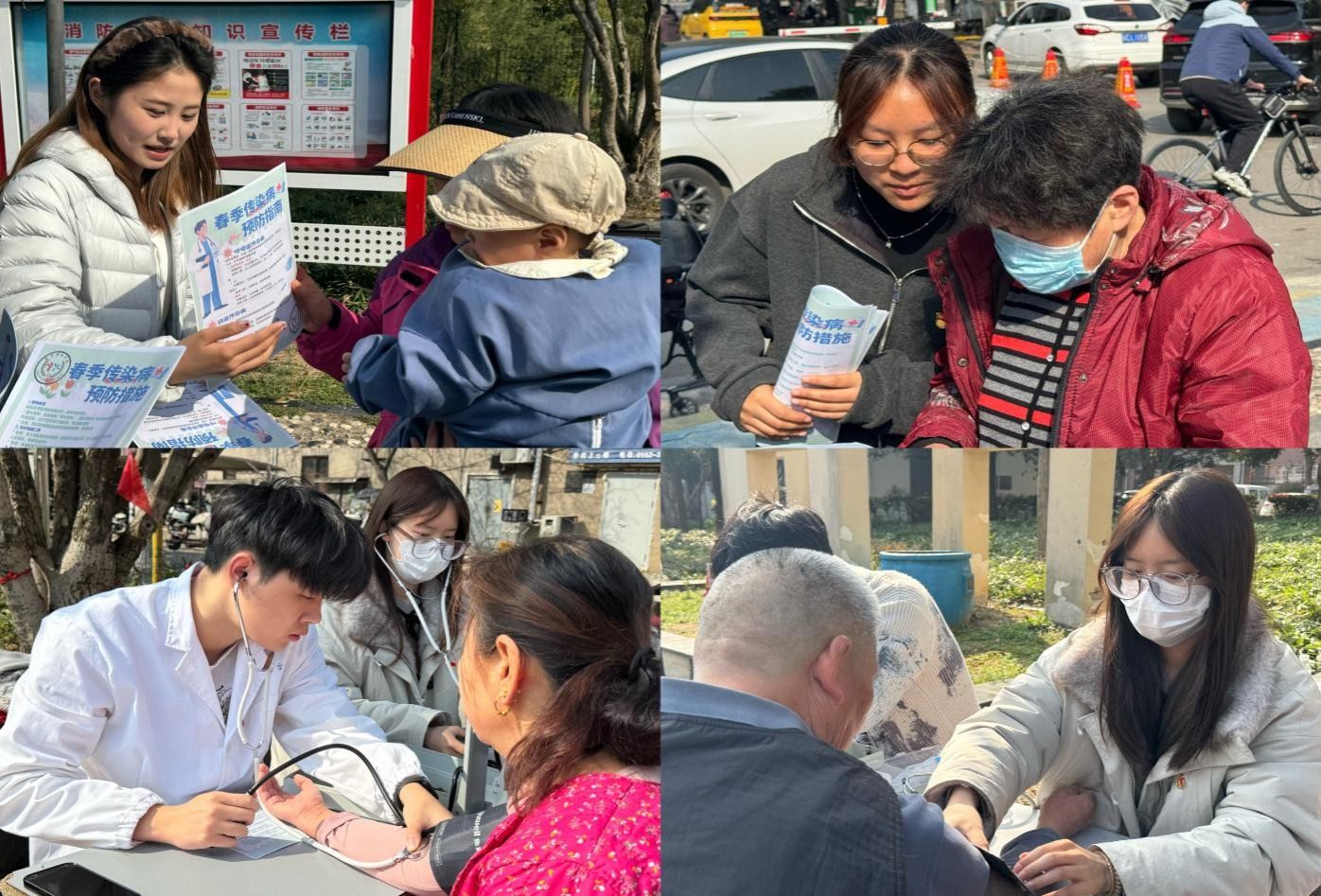 3月22日,支部党员志愿者走进社区,开展春季防病健康科普志愿服务。志愿者们立足医学影像专业特长,向社区居民细致讲解春季常见传染病预防知识,现场发放健康宣传资料,耐心解答居民健康咨询,并为大家测量血压、提供个性化健康指导。贴心周到的服务与专业严谨的讲解,切实守护居民身体健康,赢得社区群众一致好评。